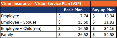 Langston offers vision insurance through Vision Service Plan (VSP). Benefits-eligible employees may elect coverage in the plans for themselves and their eligible dependents. Employees pay the full cost of vision insurance.